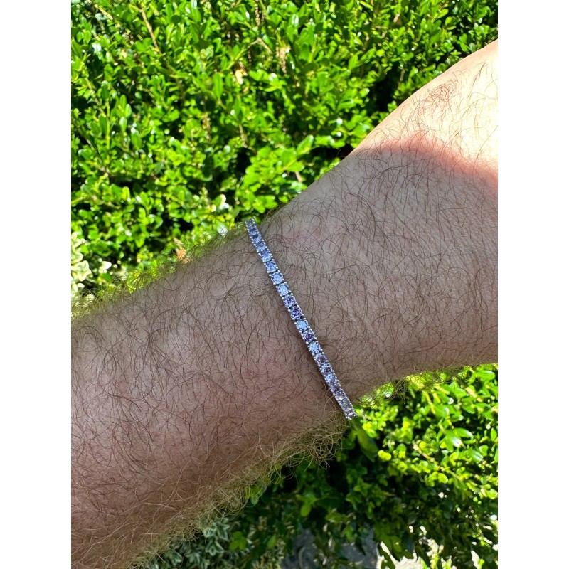 Harlembling 3mm Purple CZ Tennis Bracelet Real Iced 925 Sterling Silver Mens Ladies 6-8.5" - 7"