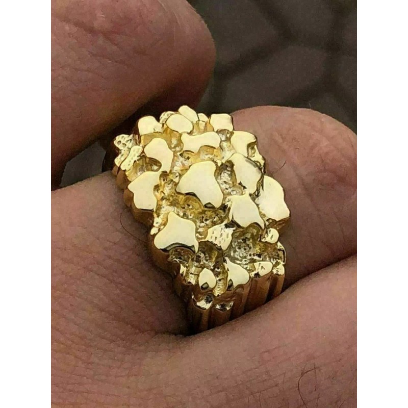 Harlembling Men's 14k Gold Plated REAL Solid 925 Sterling Silver Heavy Nugget Ring Size 6-13 - 11
