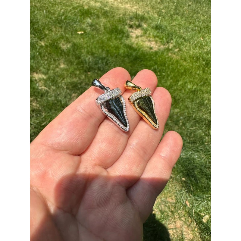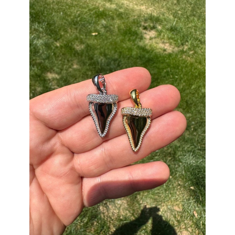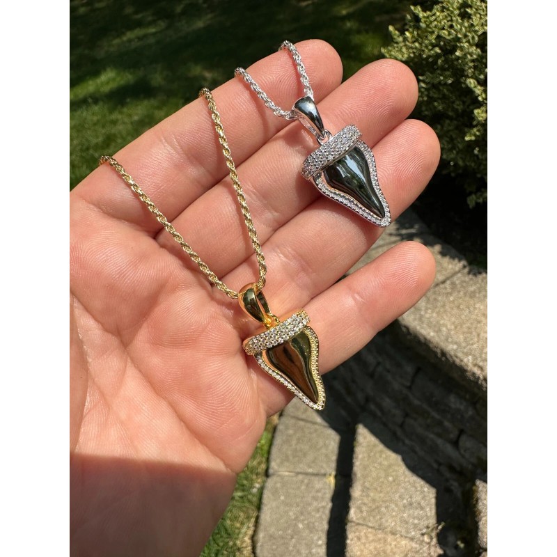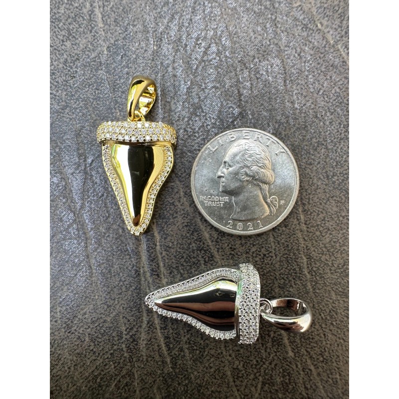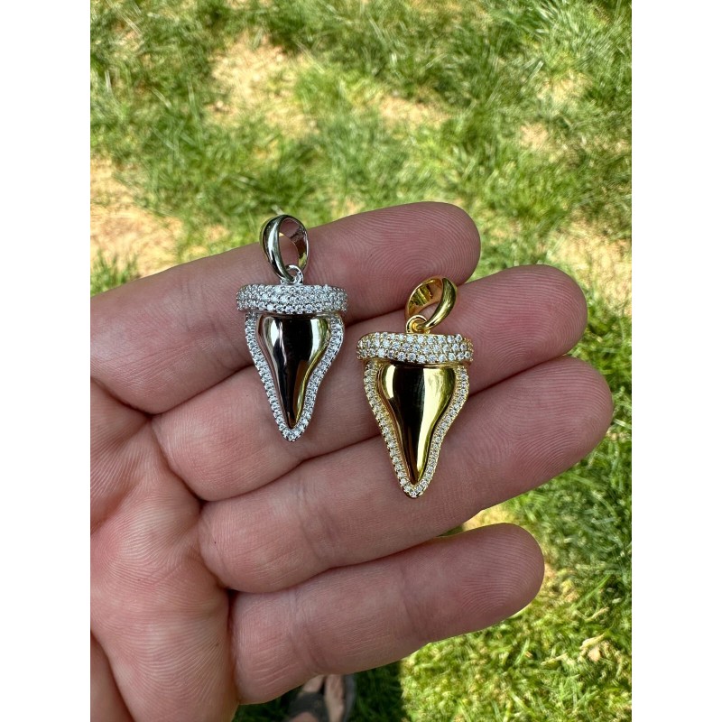 Harlembling MOISSANITE Shark Tooth Iced Pendant 925 Silver / Gold Plated Hip Hop Necklace - Natural SIlver