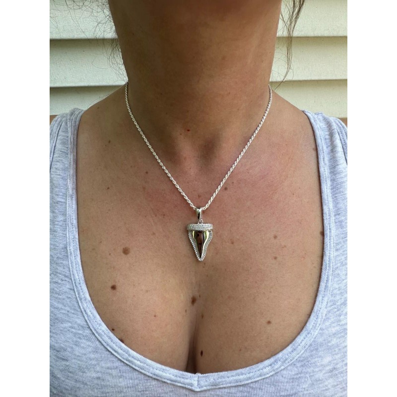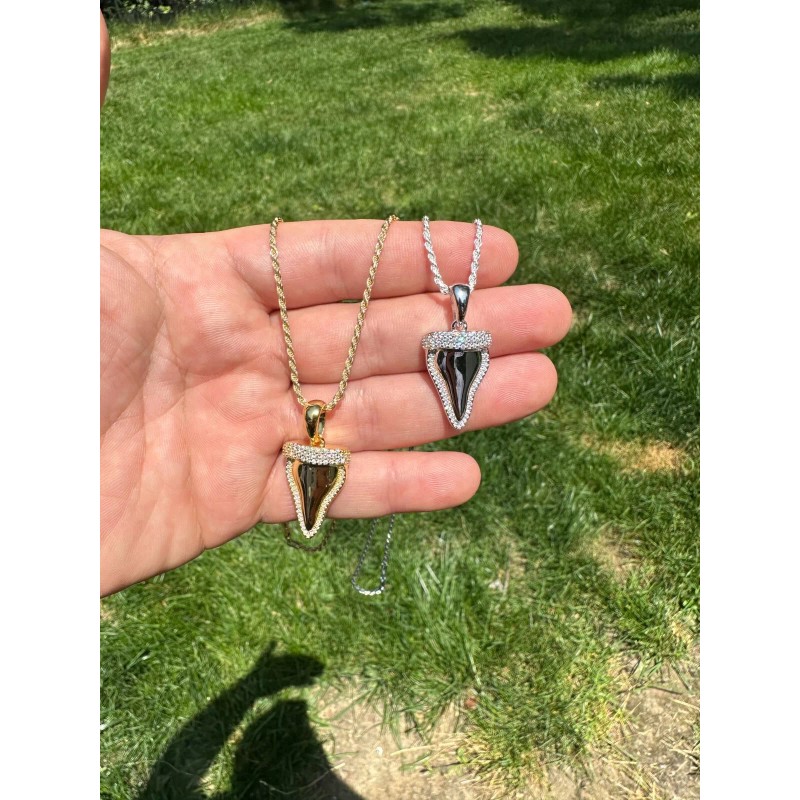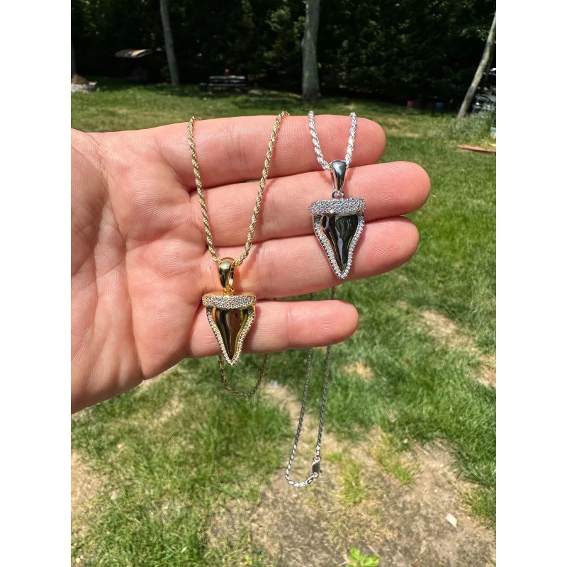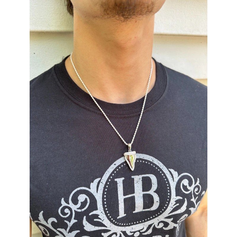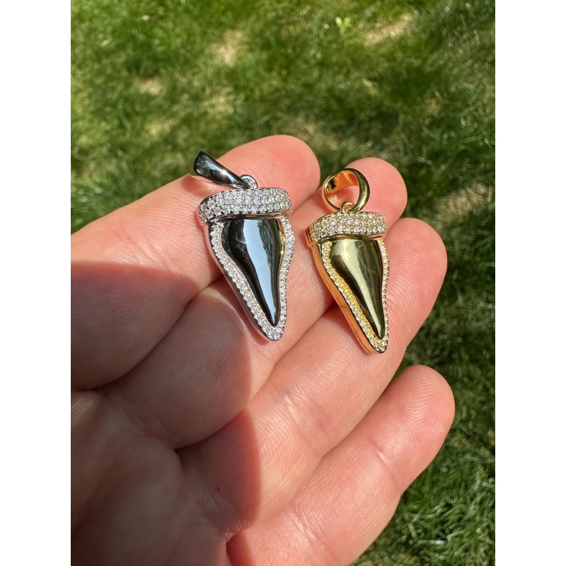Harlembling MOISSANITE Shark Tooth Iced Pendant 925 Silver / Gold Plated Hip Hop Necklace - Natural SIlver