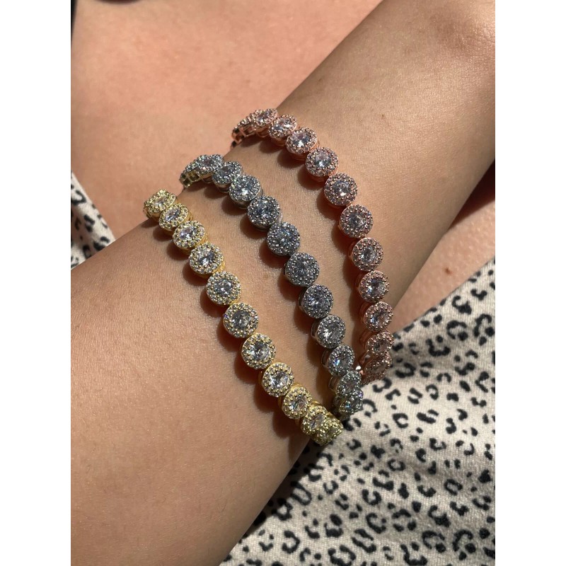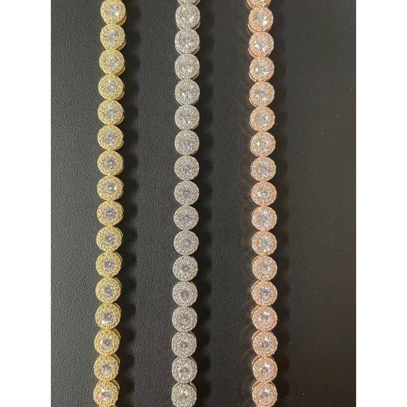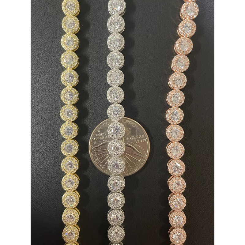 Harlembling Real 925 Silver Yellow Rose Gold Plated Custom Tennis CZ Bracelet - Natural Silver