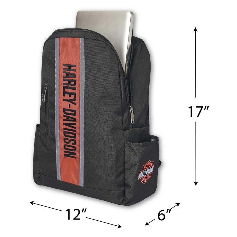 Harley-Davidson Classic Iconic H-D Sport Stripe Backpack, Rugged Polyester Black