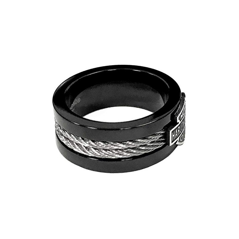 Harley-Davidson Men's Ring, Bar & Shield Steel Cable Band, Black HSR0021 (9)