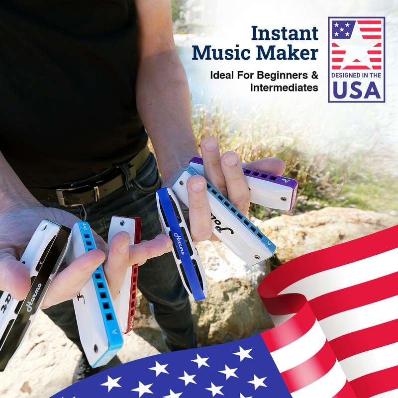 • USA-DESIGNED EXCELLENCE: Designed and quality-checked in the USA by a professional harmonica player-owned brand based in Idaho, this key of Eb harmonica catches the eye with its white matte covers and refined edges. An in-house-specific process guarantees outstanding sound projection and airtight performance.