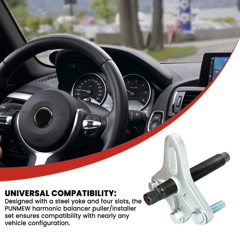• Universal Compatibility: Designed with a steel yoke and four slots, the PUNMEW harmonic balancer puller/installer set ensures compatibility with nearly any vehicle configuration.