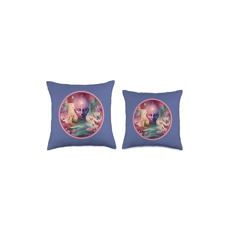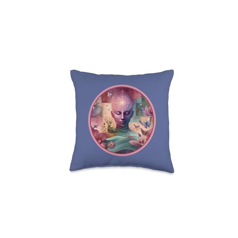 Harmonious Mind & Nature - Collage Serene Spiritual Artwork Throw Pillow