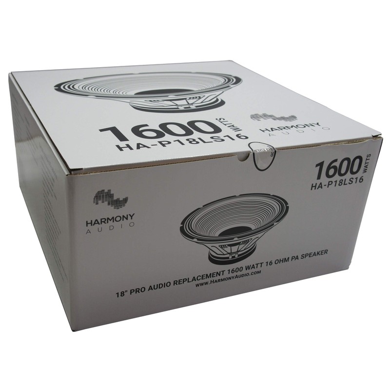 - EXCEPTIONAL BUILD: Built to withstand the demands of professional use, the HA-P18LS8 features a robust construction that ensures durability and consistent performance, making it well-suited for challenging audio environments. The Harmony HA-P18LS8 18" Pro PA Subwoofer is tailored for professional audio applications, boasting a formidable 1600W power output to elevate the low-frequency performance in your sound system.