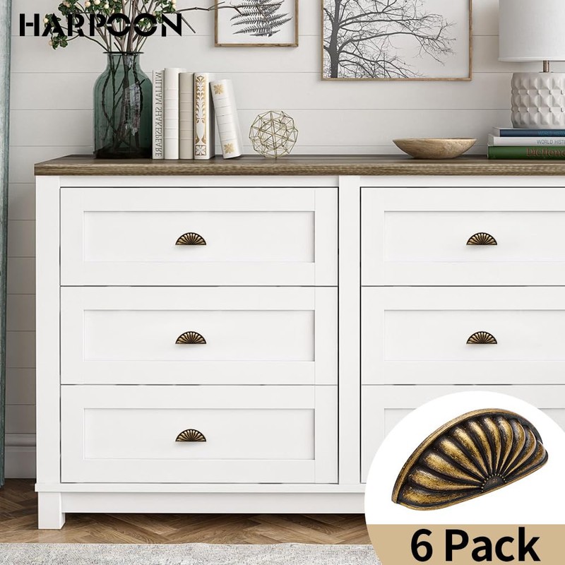 HARPOON 6 Pack Bin Cup Drawer Handle Pull Cabinet Hardware,Kitchen Cabinet Pulls,3 inch Hole Center Antique Brass