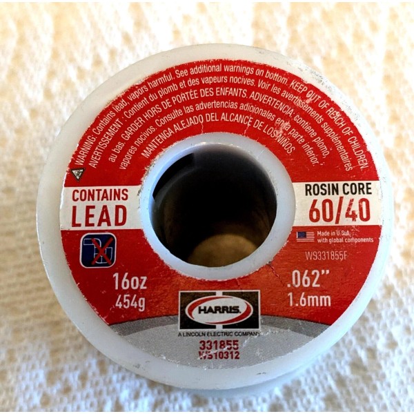 Harris 331855 Rosin Core Solder,Dia 0.062 In,1Lb