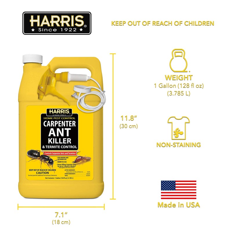 Harris Carpenter Ant Killer & Termite Control Treatment, Kills On Contact, Odorless & Non-Staining Formula, 128 Oz