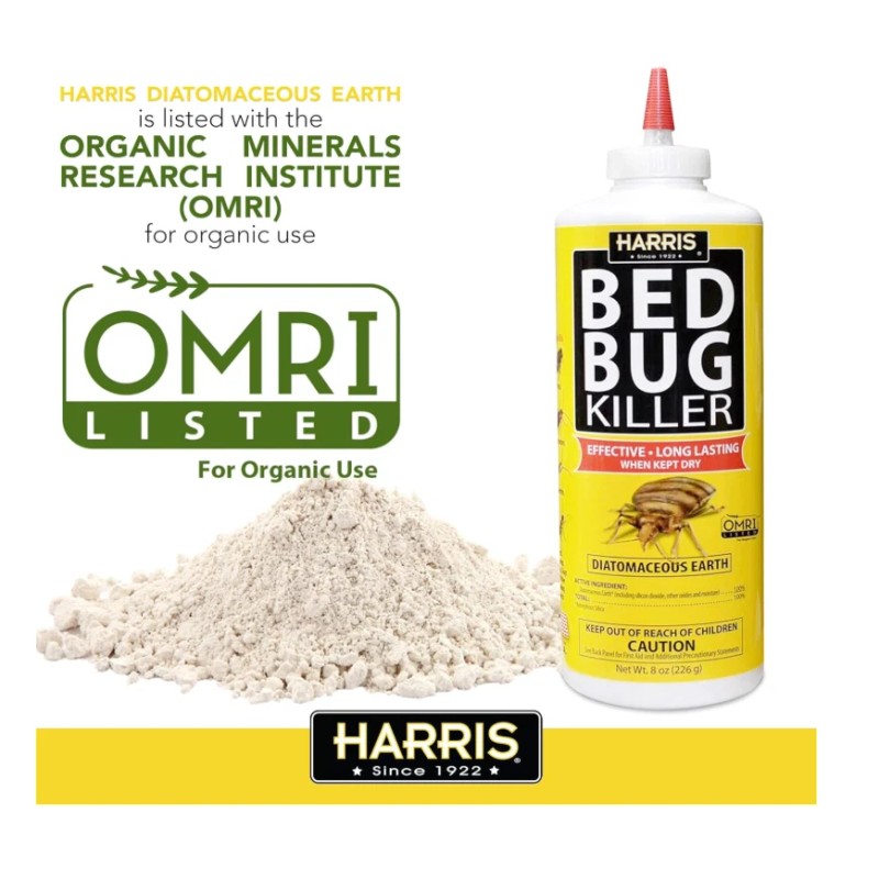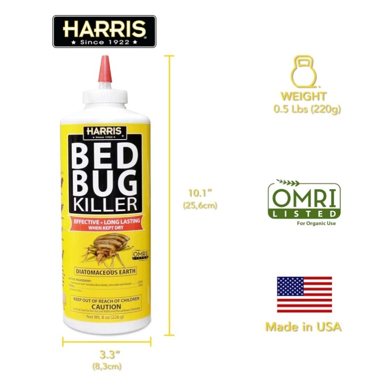 Harris HDE-8 Bed Bug Powder Diatomaceous Earth, 8oz, Yellow Pack of 5