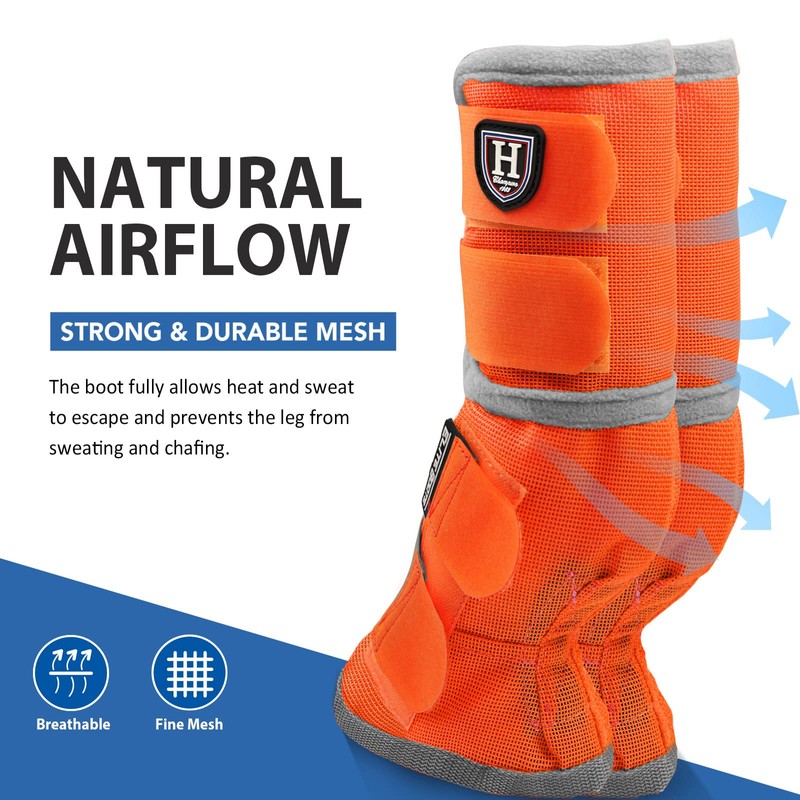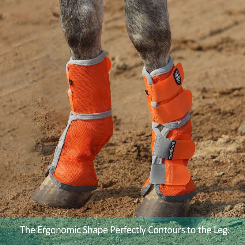 - RELIABLE LEG GUARD: These boots shield both front and rear legs, a special contoured shape hugs your horse’s coronet for a comfortable fit. The boot fully allows heat and sweat to escape and prevents the legs from sweating and chafing.