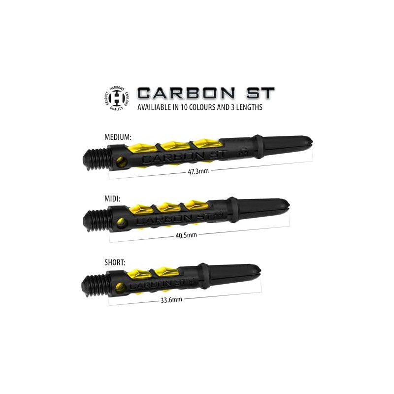 Harrows Darts 3 Sets Carbon ST Dart Shafts - Total 9 Dart Shafts - Medium, Midi & Short - Heavy Duty Carbon Composite - Medium Yellow