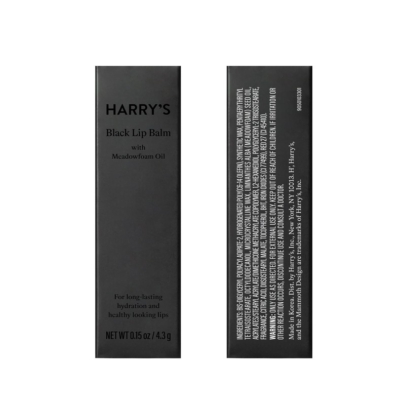 Harry's Black Lip Balm isn't your average lip balm for men. It's a sophisticated addition to any grooming kit for men. We know the lips are one of the areas where the skin is most thin, so we developed a formula using Korean skincare technology to fight against dryness and discomfort. Upon application, the Black Lip Balm creates a healthier looking appearance, leaving lips feeling smooth, moisturized, and hydrated. Even though Harry's proprietary, Korean-made formula has a black tint, it goes on clear for a natural look and feel. This is a lip treatment that contains over 80% conditioning agents and nourishing meadowfoam oil to lock in moisture all day, without leaving lips greasy or sticky. The stylish, minimalist black tube gives a sophisticated look, making this lip balm a thoughtful gift or stocking stuffer for men who take pride in their grooming routine.