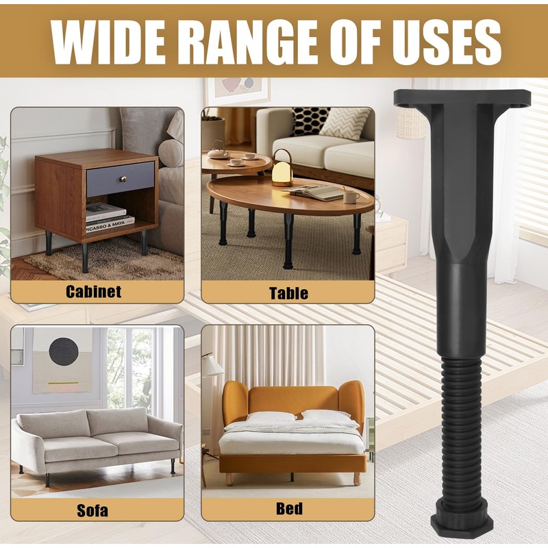 - Versatile use: These adjustable bed support legs are suitable for king/queen/platform beds, wood slatted beds and also serve as adjustable height furniture legs for tables, sofas, dining sets, TV cabinets, dressers, nightstands, vanities, and more