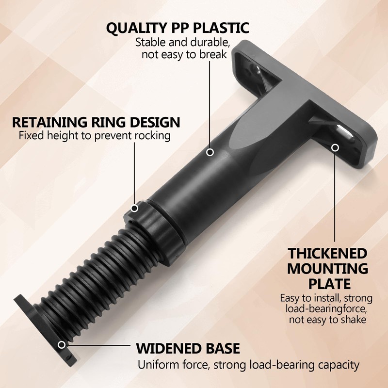 - Material: Crafted from durable rigid plastic, these support legs are lightweight, waterproof, rust-proof, and wear-resistant. The thickened material ensures stable support while protecting your floor from damage and minimizing noise