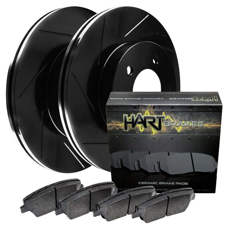 Hart Brakes Fits 2002-2007 Jeep Liberty Front Black Slotted Brake Rotors+Ceramic Pads