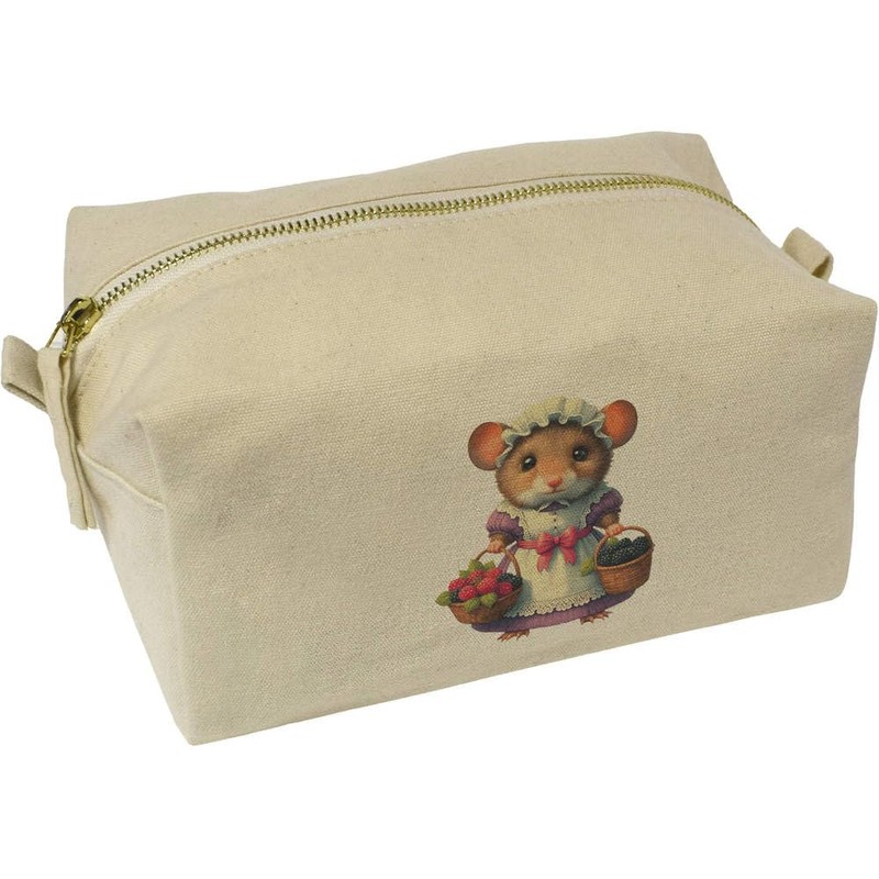 'Harvest Mouse with Fruit Baskets' Canvas Wash Bag/Makeup Case (CS00040371)