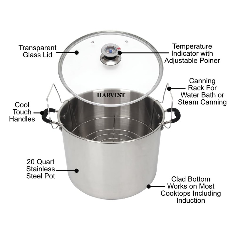 Harvest Stainless Steel 20 Qt Canning Pot with Rack | Water Bath or Steam Canning | Works on All Stovetops Including Induction, Glass, Gas (Stainless Steel Canner + Tools) (Stainless Steel Canner)