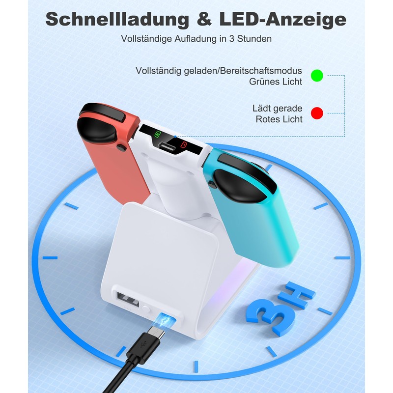 - EFFICIENT SWITCH CHARGING STATION FOR UP TO 2 JOY PAD CONTROLLERS - Charge two first-generation Joy Pad controllers simultaneously - simply attach to the sturdy charging dock. With 5 V/2 A charging technology and 1 m USB-C cable for fast power supply (approx. 3 hours charging time when the battery is empty)