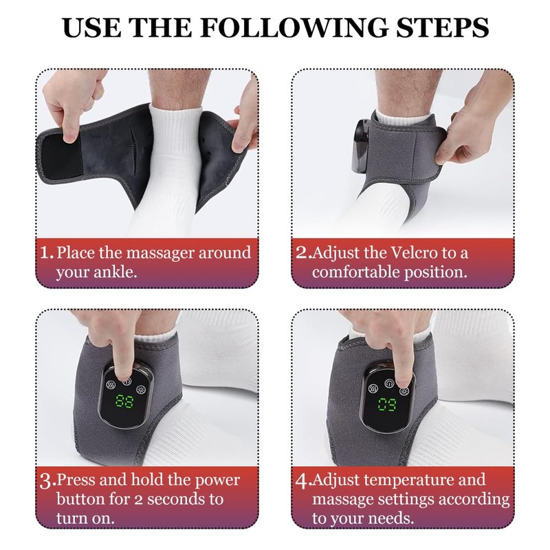 - Foot Massager: 5 temperature settings, adjustable temperature control from 40°C to 60°C, deep penetration to relieve ankle pain and fatigue, suitable for post-workout recovery or daily relaxation.