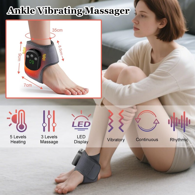 HASAIKA® Rechargeable Ankle Massagers, Electric Foot Massagers, 5 Levels of Temperature Setting, 3 Massage Modes to Relieve Ankle Pain