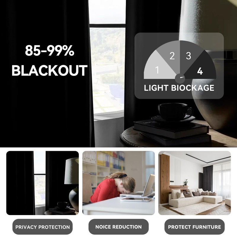 - Amazing Material: Our extra long curtain are crafted from Triple-weave blackout fabric, which can block up to 85%-99% sunlight and UV (darker colors have a better effect), Dark and quiet environment make you will have a good sleep, full of energy and happiness in daily life.