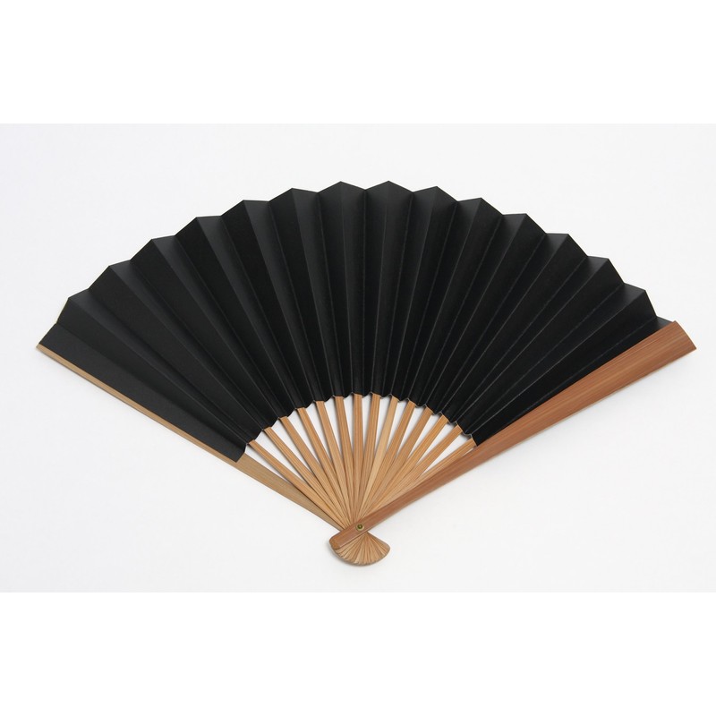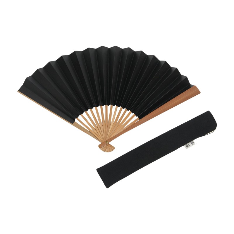 Hasegawa Folding Fan, Large Size, Kyoto Artisans Hand Made Fan, Comes with Fan Bag in Wooden Box, Black