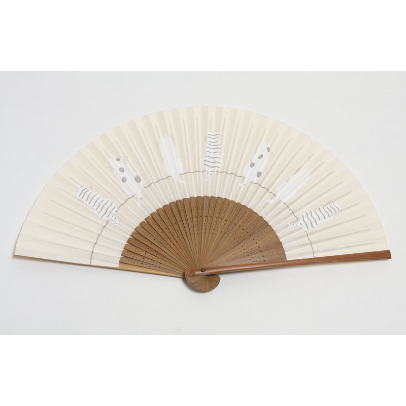Hasegawa Kyoto Fan, Cat Back, Handmade, Fan, with Tassel, Comes in a Paper Box, white