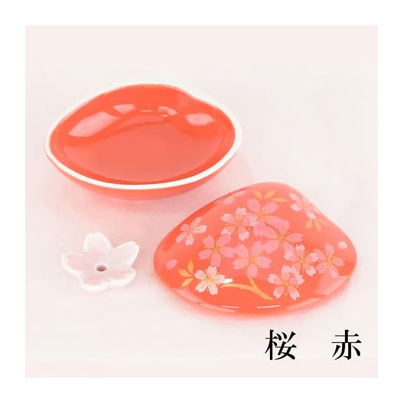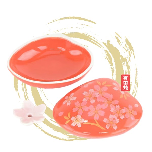 Hasegawa Red Shell Incense Dish & Holder Set: Heian-Inspired Kaiawase Motif - Gold & Pink Design with Sakura-Shaped Incense Holder - Perfect for Success & New Beginnings, Arita Porcelain