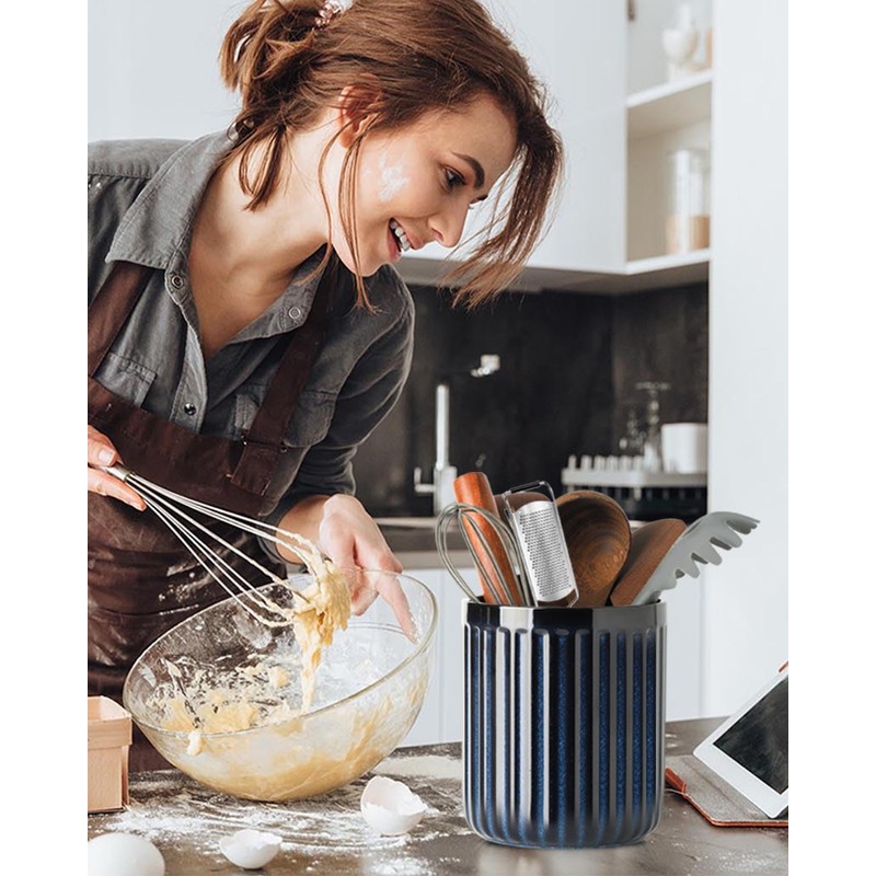- Textured Elegance: This ceramic navy blue utensil holder features a ribbed texture with lighter flecks, enhancing your kitchen decor and adding a tactile touch that enriches your countertop’s charm