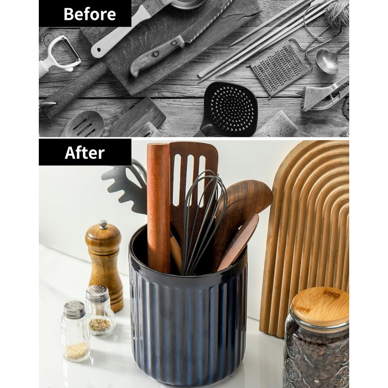 - Sturdy Utensil Organizer: Experience the durability and reliability of ceramic utensil crock for your kitchen counter. Crafted from premium ceramic material, utensil holder boasts a robust build with substantial weight, ensuring long-lasting stability