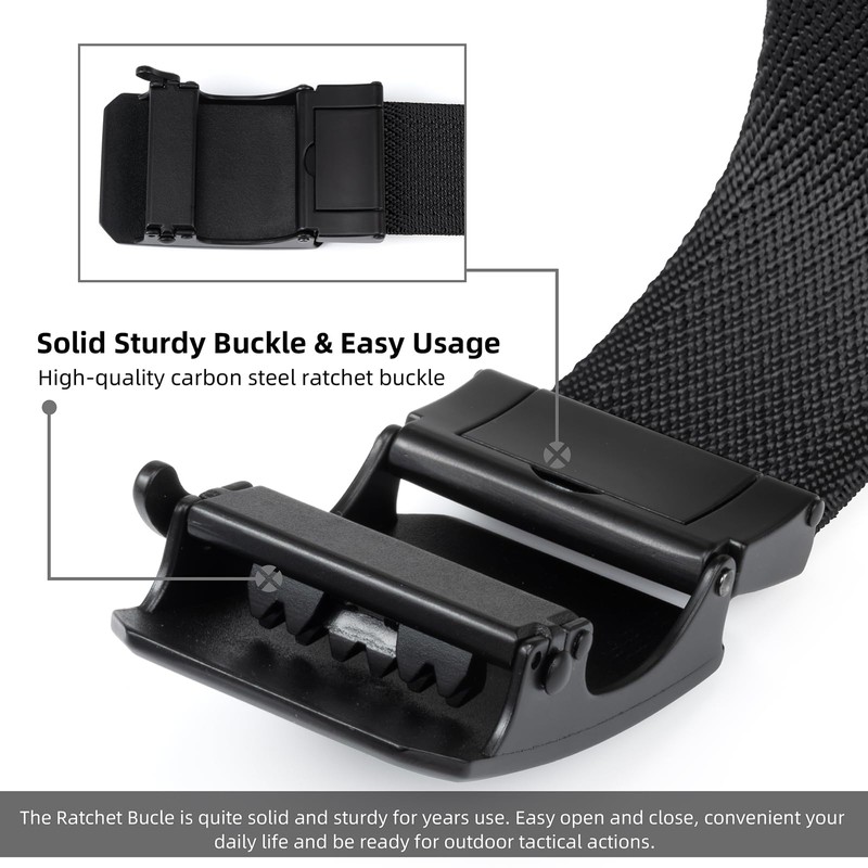 - Easy to Just-Convenient ratchet design:Just one-hand operation that pull the lever at down-side of buckle to get it adjusting, Don’t need to untying the belt at all,it can be made anytime anywhere easily without being noticed,especialily after a full meal.