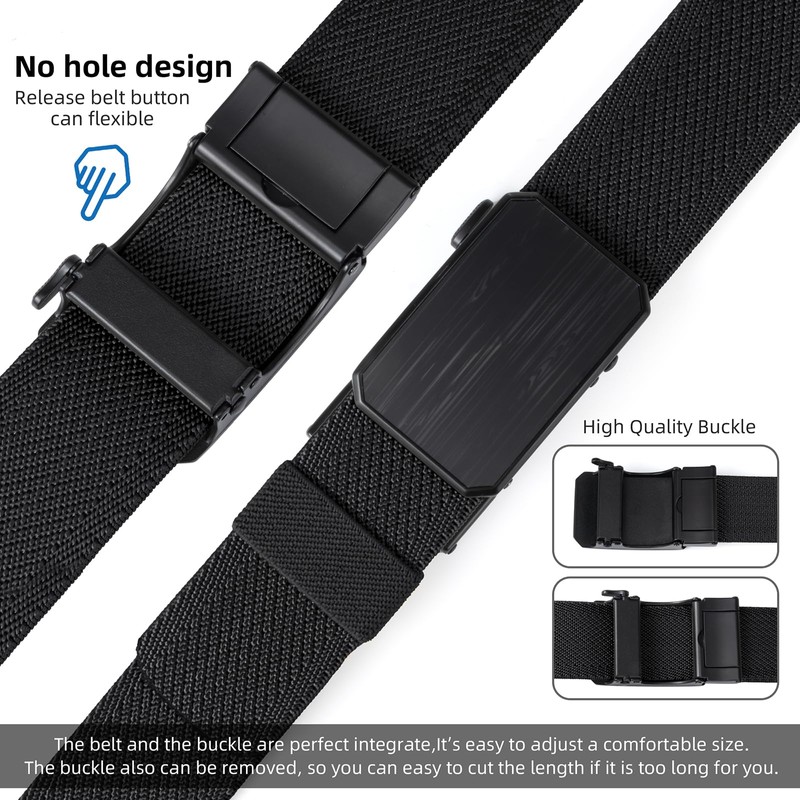 HASHIJI Ratchet Belt for Men - Elastic Nylon Tactical Belts Thicker No Holes Adjustable, W:3.8cm L:120cm