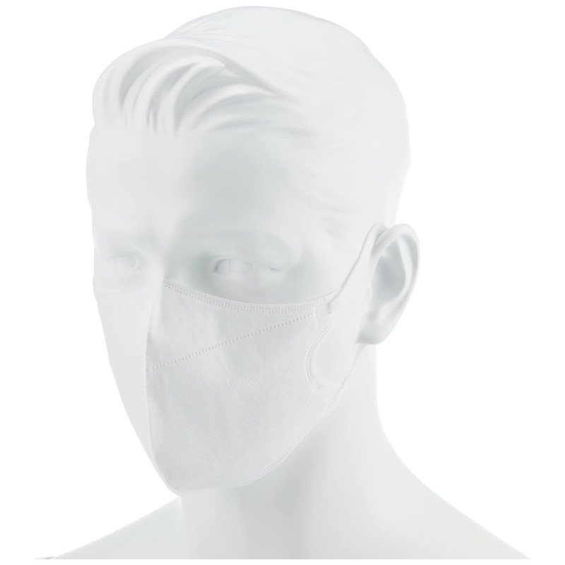 The "organic cotton non-woven fabric" and "soft ear straps" provide a comfortable fit.