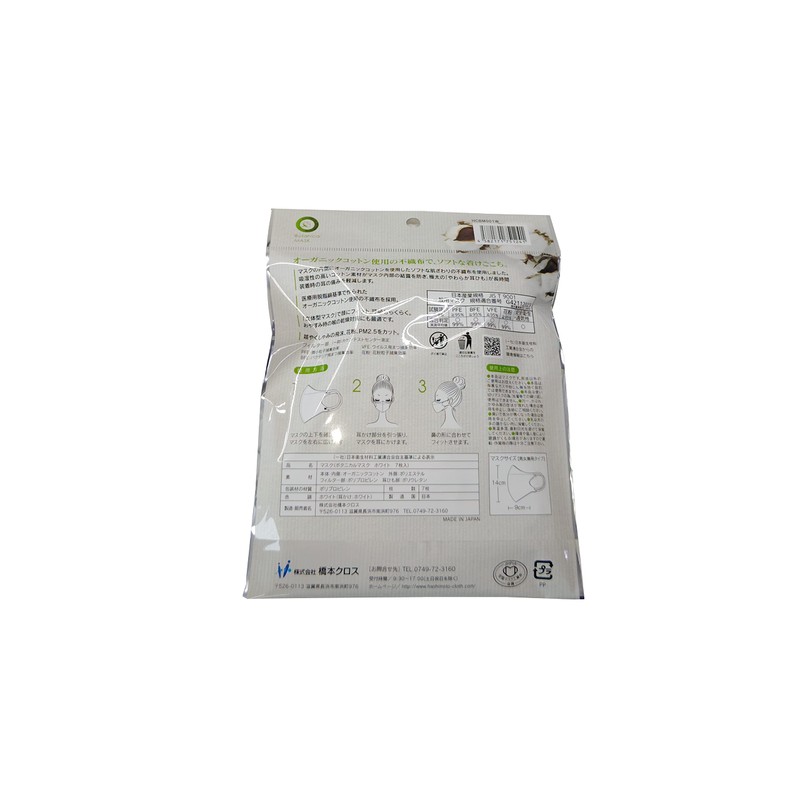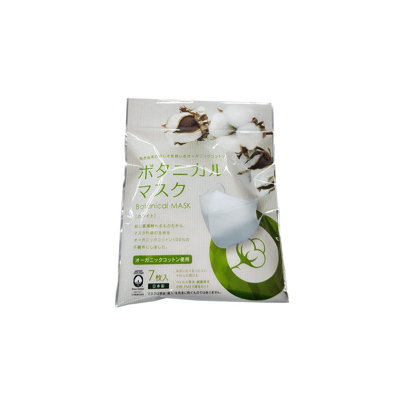 - [Basic Information] Product Name: Botanical Mask White Target Group: Cold, pollen, dust, dry etc. Mask body: (Inside) Organic cotton (Exterior) Polyester; Filter part: Polypropylene; Ear strap: Polyurethane; Number of pieces: 7 pieces/bag Size: Height 5.5 inches (14 cm), Width 3.5 inches (9 cm) (when folded); Country of manufacture: Japan Manufacturer: Hashimoto Cross, Naga 976 Nanhamamachi, Naga city