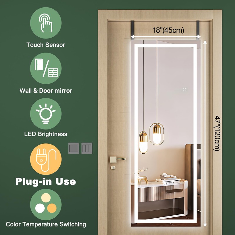 - 👍【Reliable & Safety Protection】The door mirror surface is clear and bright, giving distinct, lifelike image and well-lit reflection, more convenient for you to complete dress up or makeup. The full-length mirror is covered by an explosion-proof membrane for shattering prevention. It prevents the glass from falling even if the mirror is impacted by an external force, making it safer and more protective against injury.
