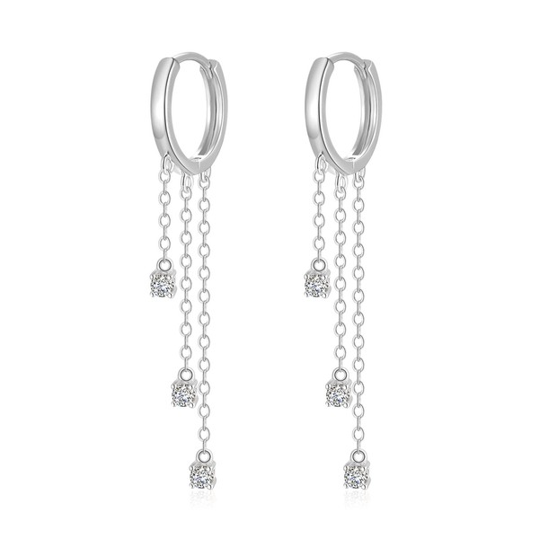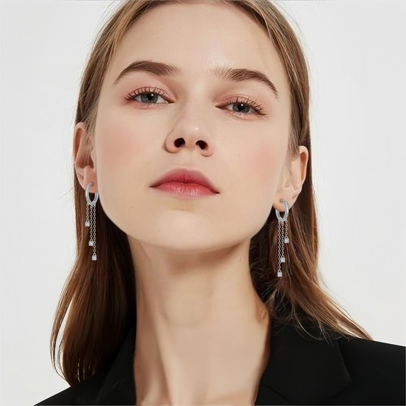 - Silver hanging earrings: beautiful hoop earrings can give your ears a unique charm. Silver round hoop earrings are beautiful and exquisite. It is the perfect combination of fashion and fun. Round hoop earrings with three asymmetrical chains gently swing in your ears. The cubic zirconia inlay also sparkles in your ear and makes you shine in the crowd.