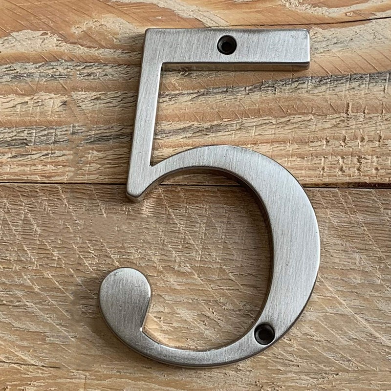 HASWARE House Number Sign 4 inch (10 cm) Modern Door Numbers Signage Plaque Street Home Address Numerals Zinc Alloy (5, Silver)