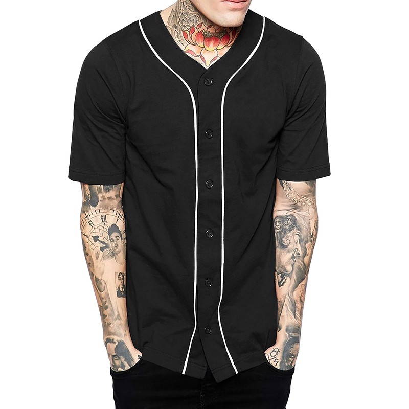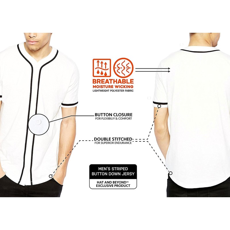 Hat and Beyond Mens Baseball Button Down Jersey (Medium, 01up01_Black/White)