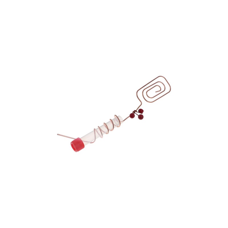 - It can also be used as a handheld feeder with the end providing an adequate handle. Three red berries were added to the feeder to help attract the birds and a perch for landing is on the end. The vial easily slides in and out of the copper coil for cleaning and filling.