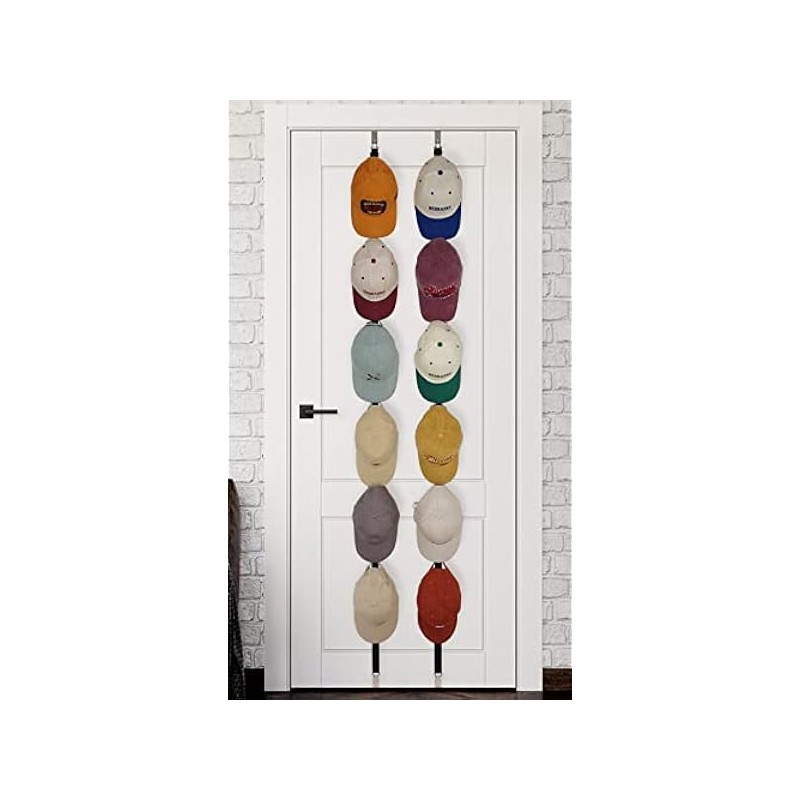 Hat Rack for Baseball Caps and Organizer Holder [ up to 36 Caps ] Display over the Door or on the Wall Hat Hanger with 2 Straps and 12 Adjustable Hooks, Black [ Upgraded Strong Hooks ]