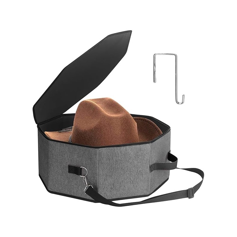 Hat Storage Box for Women and Men, Hat Box for Travel and Storage, Collapsible Hat Case Cowboy Cap Hat Organizer for Closet with Handles, Hat Bag Hat Case (Black)