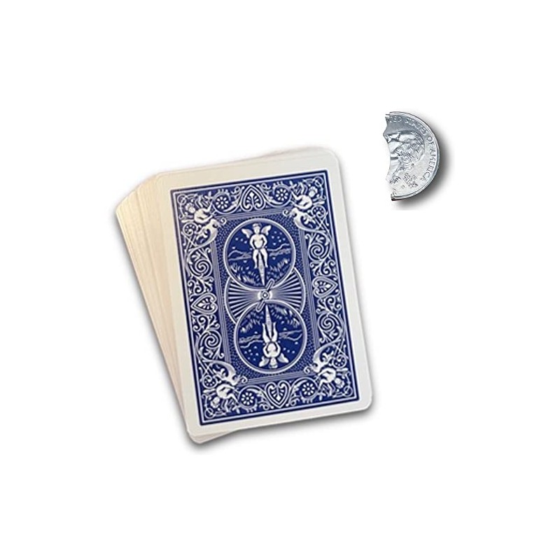 Hat Trick Magic Blue Back Wizard Stripper Deck and Bite Out Quarter Trick Kit Includes Replacement Rubber Bands