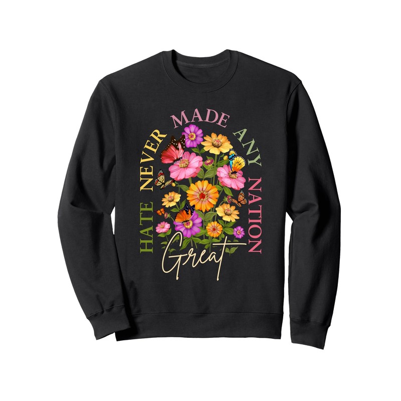 Hate Never Made Any Nation Great Floral Political Statement Sweatshirt