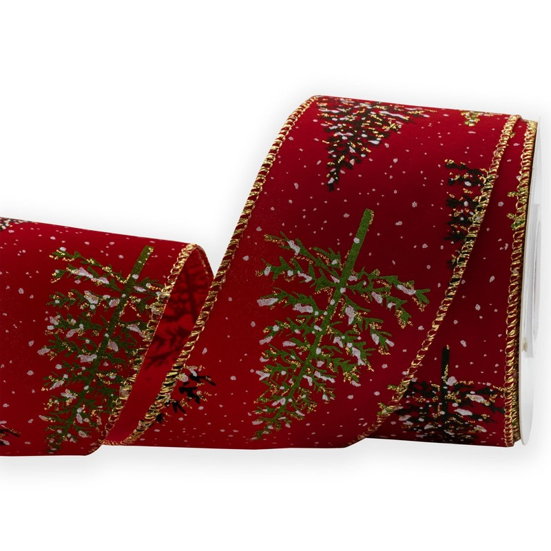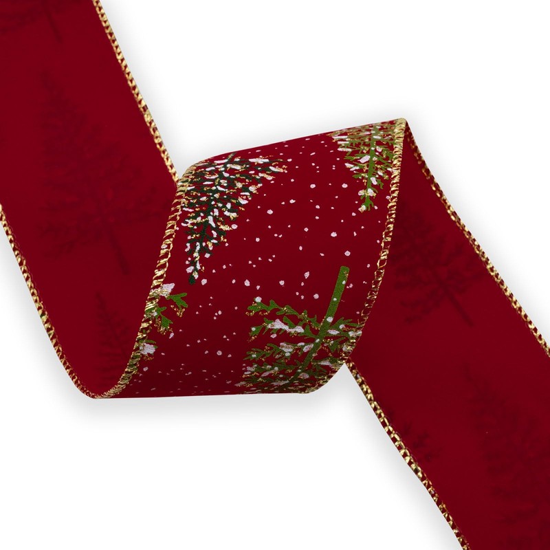 HATIANGE Red Wired Velvet Ribbon Christmas Tree Golden Edge Ribbons, 2.5 inch x 10 Yards, for Craft Projects, DIY, Decoration, Gift Wrapping