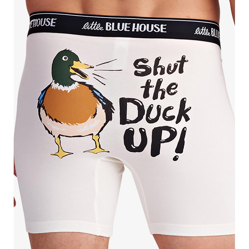 Hatley Little Blue House Men's Joke Boxers, Shut The Duck Up, Small