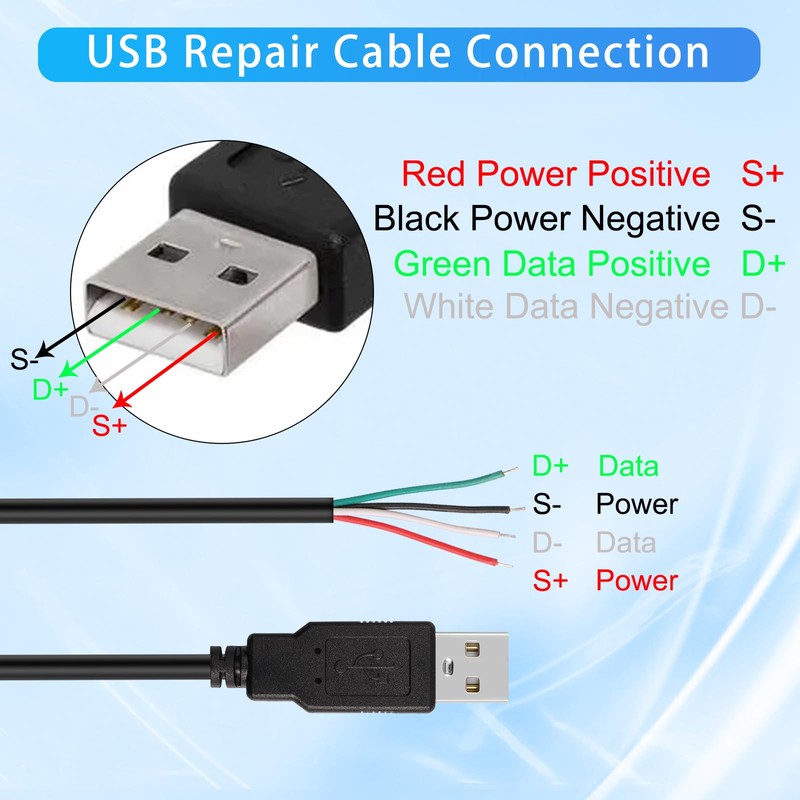 - [Charging/Data Transfer] USB A male 4-pin pigtail open power data cable, two-in-one charging and data transmission, USB male plug connector can be connected to your computer, laptop for charging and data transmission, supports 5V 2A fast Charging, supports high-speed USB 2.0 transmission rate 480 Mbps, helping you work efficiently