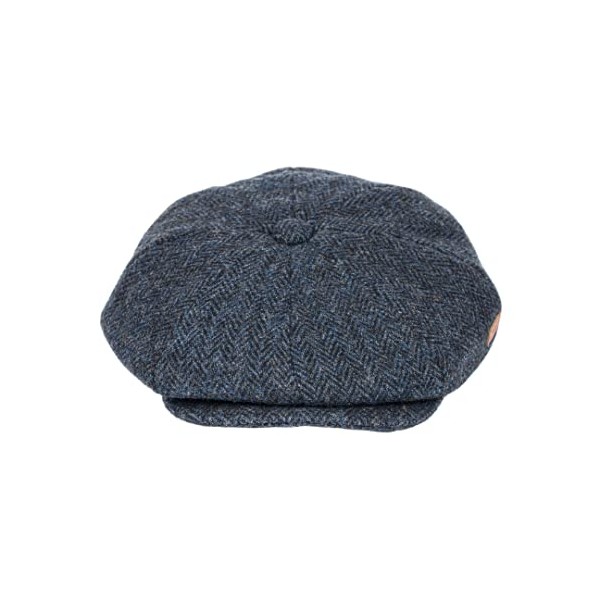 Hats of London Mens 100% Wool Newsboy Hat Flat Cap Blue Herringbone Small/Medium