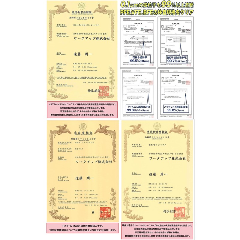 ■【強粘着】HATTA MASK (ハッタマスク)【貼るマスク】ひもなしで耳の負担ゼロ メガネが曇らない 男女兼用 PFE99%以上【実用新案・意匠登録済】貼り付けマスク